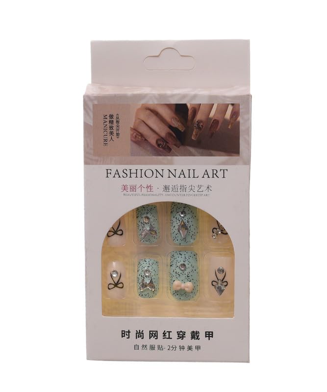 Generic - أظافر تركيب عن طريق الضغط مربعة قابلة لإعادة الاستخدام - 12 قطعة متوسطة مع علامات لاصقة - متعددة الألوان