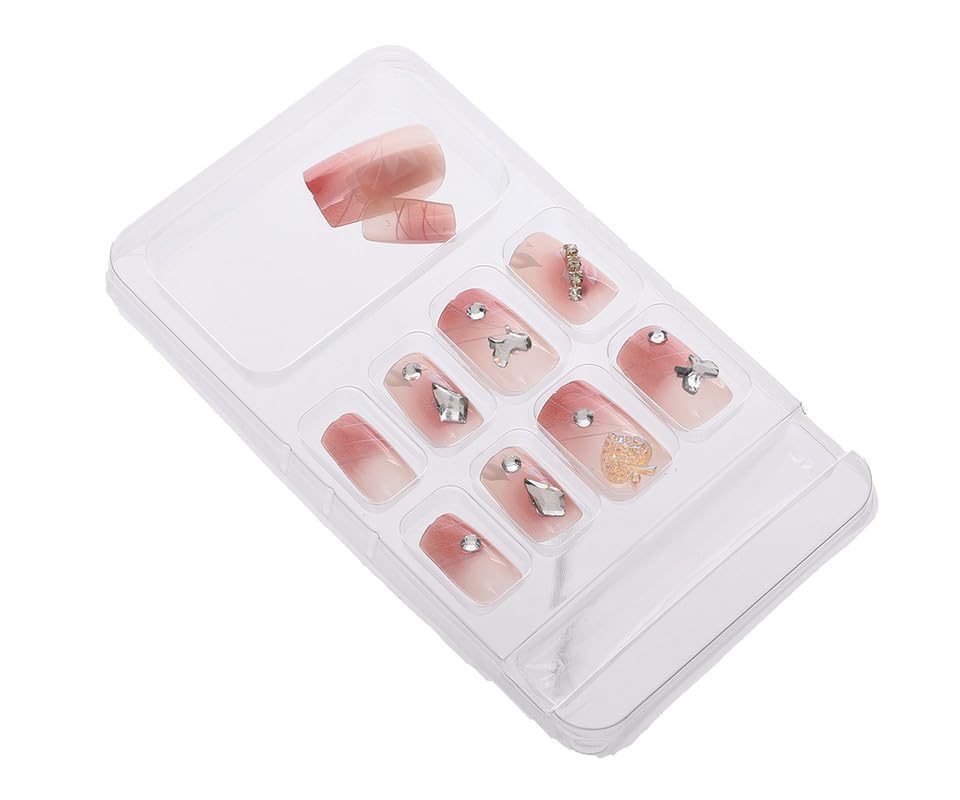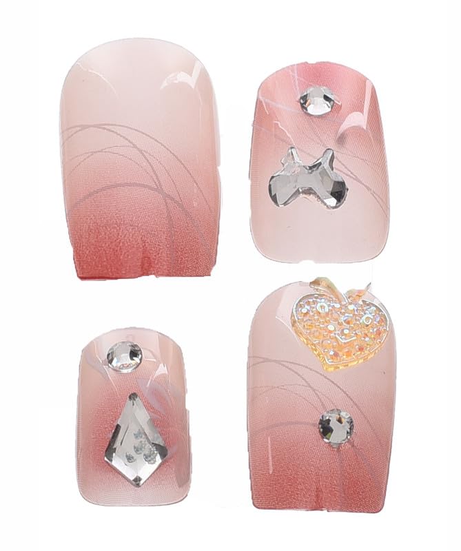 Generic - أظافر تركيب عن طريق الضغط مربعة قابلة لإعادة الاستخدام - 12 قطعة متوسطة مع علامات لاصقة - وردي