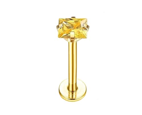 BIJOUX BEAUTIQUE - مجوهرات ثقب الاذن مرصعة باحجار كريمة مربعة الشكل - اصفر وذهبي