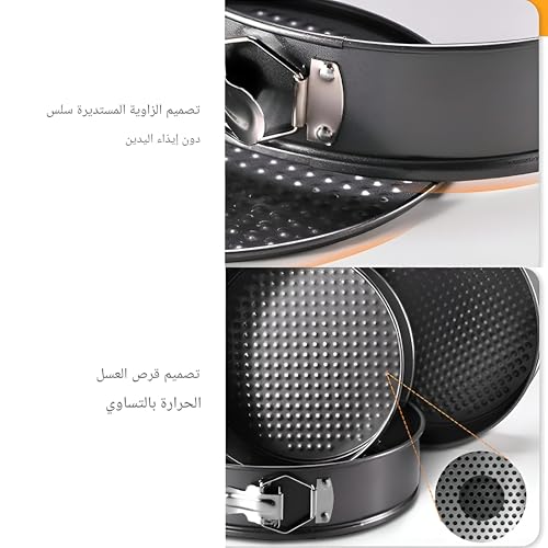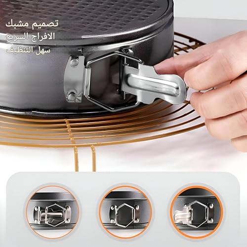 - يتميز بتصميم مثالي، حيث تعمل آلية القفل الزنبركي على إنشاء ختم مانع للتسرب، مما يضمن احتواء الخليط أثناء الخبز. يسمح الجزء السفلي القابل للإزالة بإزالة الكعكة بسرعة وسهولة، مما يجعل عملية الخبز أكثر كفاءة ومتعة.