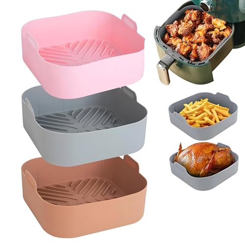 Generic - إناء سيليكون مربع الشكل لمختلف أجهزة الطهي مثل المقلاة الهوائية والفرن (18 سم) – قابل لإعادة الاستخدام وآمن للطعام – بألوان جذابة وأشكال مبتكرة (3 قالب)، متعدد