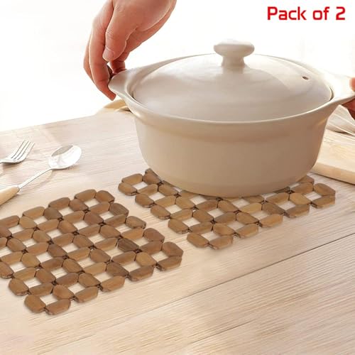 Generic - قواعد مربعة لحمل الاواني الساخنة مصنوعة الخشب، وسادة حرارية للمنزل لطاولة الطعام والمقالي الحرارية للمطبخ - (Pes .2)