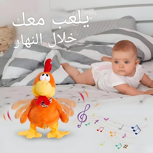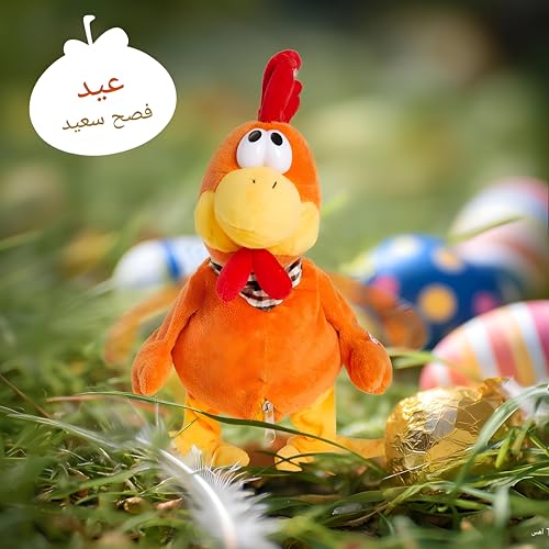 Generic - لعبة الدجاج المتحركة سكواكينج - قطيفة تفاعلية مع حركة وموسيقى ومريلة، مثالية لأعياد الميلاد أو العطلات أو كرفيق محبوب للأطفال الصغار.