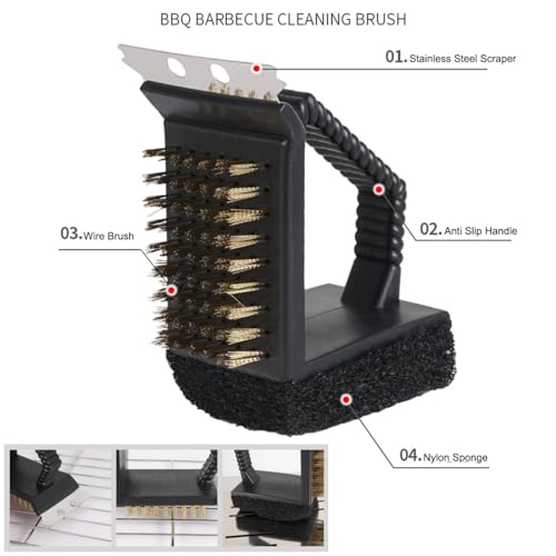 - المظهر: تصميم 3 في 1: مع سطح فرشاة سلكية، يمكنها تنظيف جميع أجزاء فرن الشواء الخاص بك، أكثر ملاءمة، أكثر فعالية