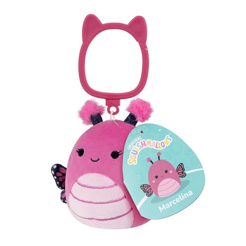 Squishmallows - سكويشمالوز كليب اون ذا راسبيري بينك مونارك باترفلاي - مارسيلينا (3.5 انش)
