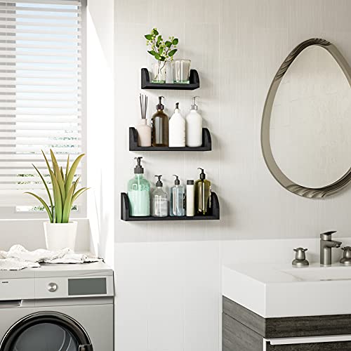 SRIWATANA - رفوف تعلق على الحائط من الخشب للكتب وغرفة المعيشة النوم والحمام والمطبخ سريواتانا- مجموعة 3 اسود مطلي