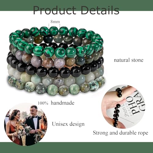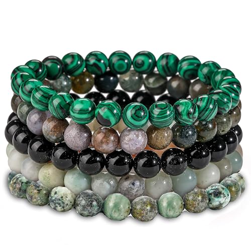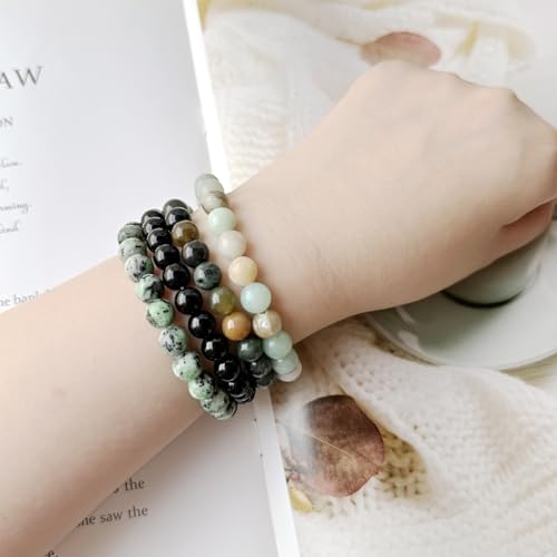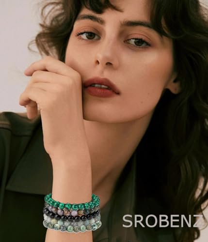 SROBENZ - أساور من الأحجار شبه الكريمة، أساور خرز من أحجار الكريستال العلاجية للنساء والرجال 8 ملم، قابلة للتمدد من الخرز الدائري للجنسين لتخفيف التوتر، أساور يوغا، 5 قطع، من سروبنز