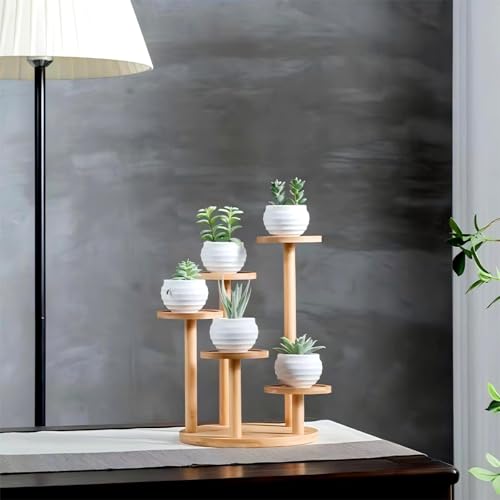 SRTFINE - حامل نباتات دائري من الخيزران مكون من 5 طبقات من سرتفاين، حامل اعشاب عصارية يوضع على سطح المكتب، رف نباتات داخلي لغرفة المعيشة وديكور المكتب - صغير (صغير)