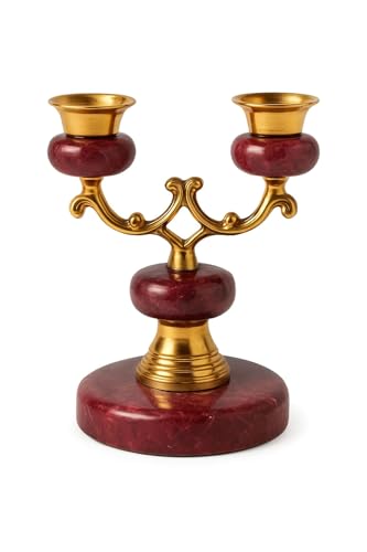 Generic - شمعدان انتيكوتي اند ماربل من اس اس مع شمعدين من الرخام الطبيعي والنحاس الممتاز، قطعة فاخرة تجمع بين الفن الكلاسيكي والأناقة العصرية لإثراء ديكور منزلك. (احمر)