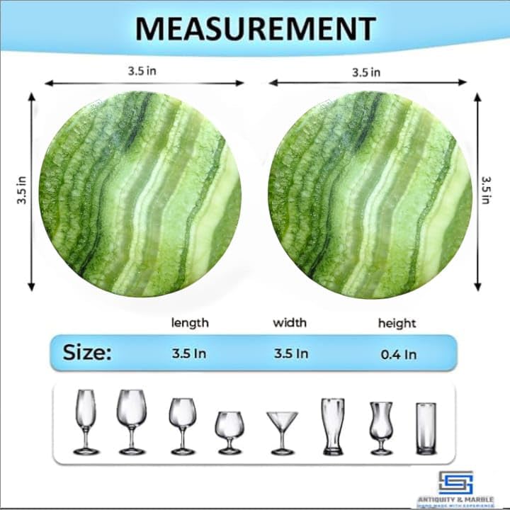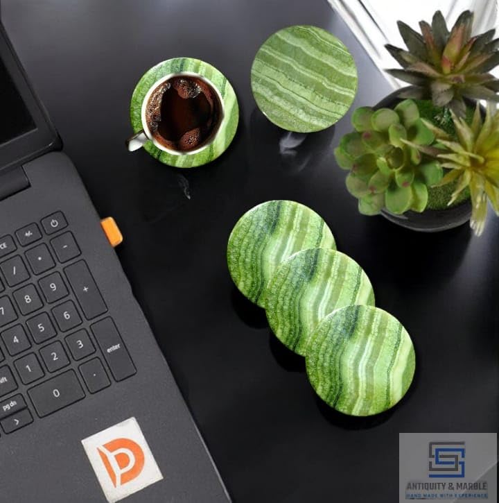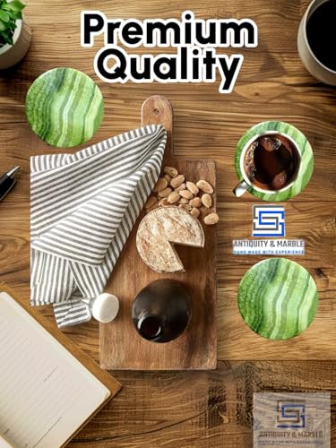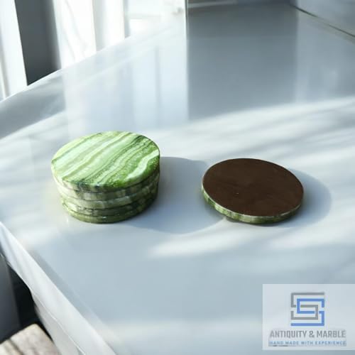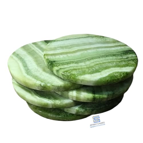 Generic - طقم قواعد اكواب بتصميم عتيق ورخام من اس اس، 6-3.5 انش للمشروبات - حجر ابستر مصنوع يدويا - تصميم عصري لطاولة القهوة وديكور المكتب (اخضر)