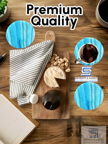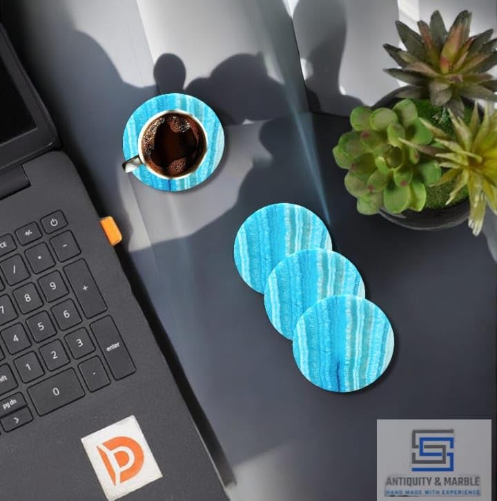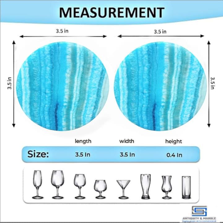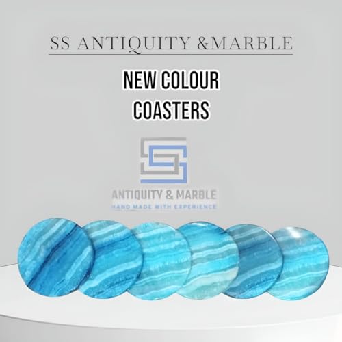 Generic - طقم قواعد اكواب للمشروبات من اس اس بتصميم عتيق ورخام من 6 قطع مقاس 3.5 انش - حجر ابستر مصنوع يدويا - تصميم عصري لطاولة القهوة وديكور المكتب (تركواز)