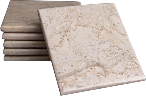 Generic - مجموعة قواعد أكواب بنمط الحجر الرخامي الطبيعي بتصميم مصقول علي شكل مربع من اس اس انتيكيتي اند ماربل، قطر 9 سم - حماية من حلقات المشروبات،6قطع.