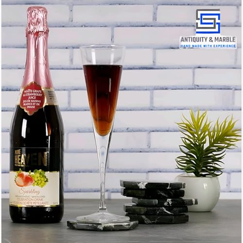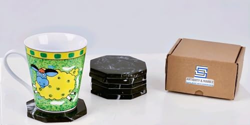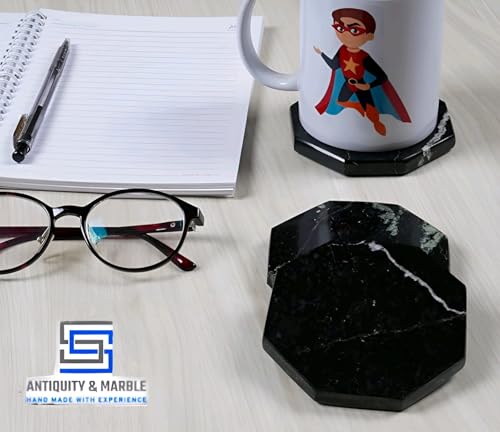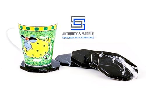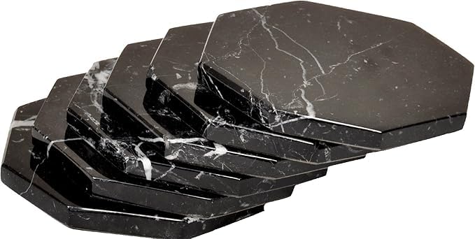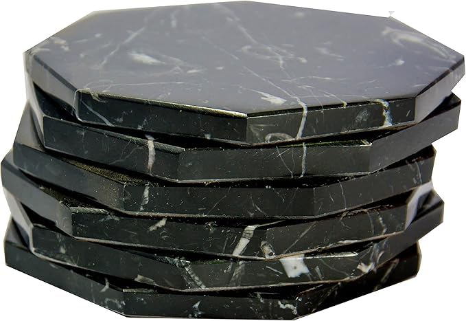 Generic - مجموعة قواعد أكواب بنمط الحجر الرخامي الطبيعي بتصميم مصقول علي شكل ثماني الأضلاع من اس اس انتيكيتي اند ماربل، قطر 9 سم - حماية من حلقات المشروبات، 6 قطع. (BLACK)