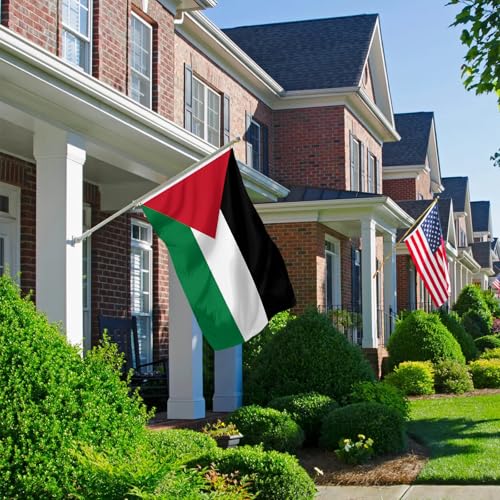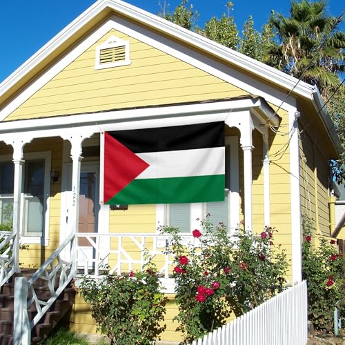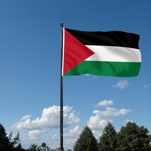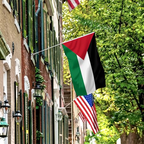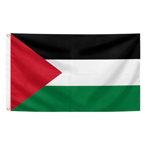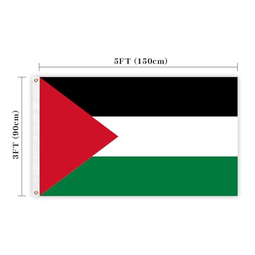 SSODREL - علم فلسطين من سودريل مقاس 3 × 5 قدم، 90 × 150 سم، علم وطني فلسطيني، راية من البوليستر للاستخدام في الهواء الطلق، مقاومة للبهتان ومتينة، مع 2 عروة نحاسية بصفين من الخياطة