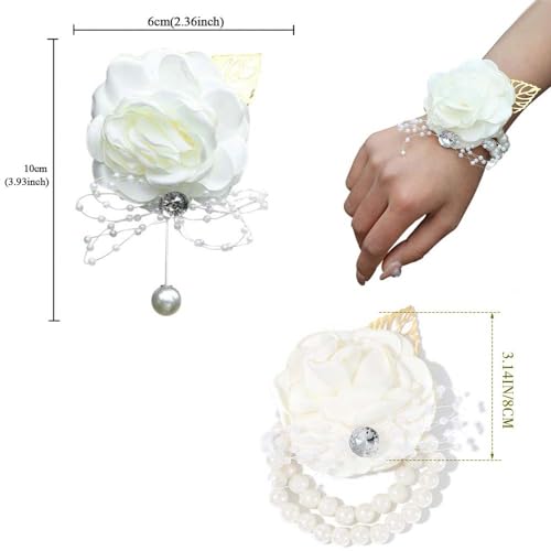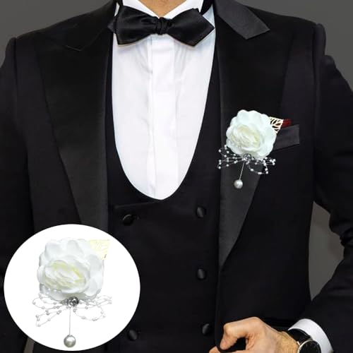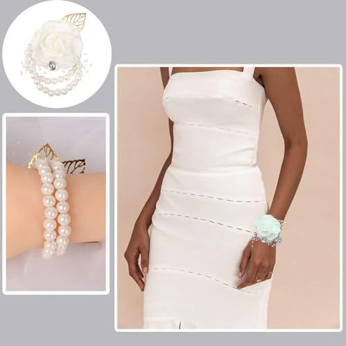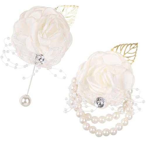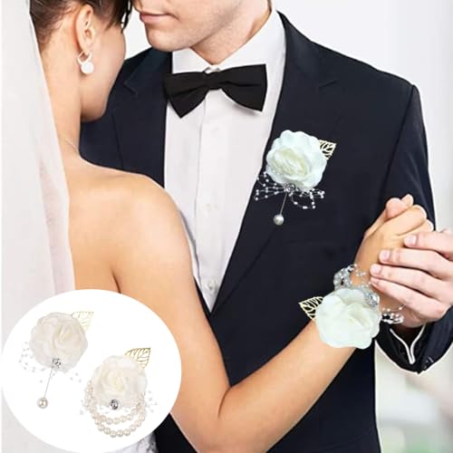SSyang - مجموعة كورسيه من الساتان بتصميم زهرة وردية للمعصم اس سيانج قطعتين للعريس والزفاف والعروس للرجال لحفلات الزفاف والحفلات الراقصة ابيض عدد القطع: 2