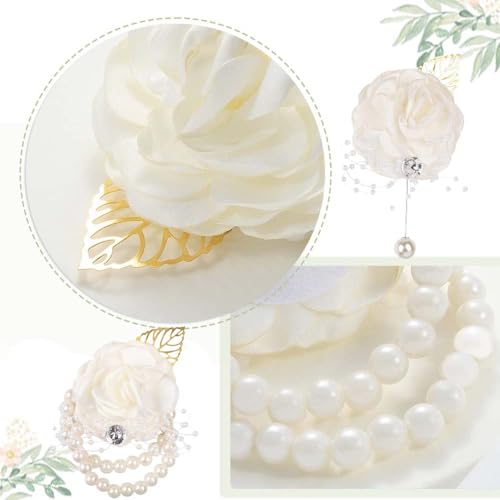 - مجموعة صدرية معصم وردية بيضاء: تتضمن مجموعة العروة الخاصة بنا زهرة معصم واحدة للنساء وعروة واحدة للرجال، وكلاهما في ورود صناعية بيضاء مصنوعة يدويًا. يرمز اللون العاجي إلى النقاء والقداسة ويرمز أيضًا إلى الرومانسية البيضاء.