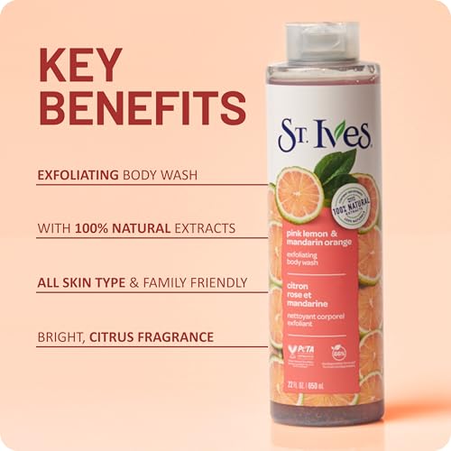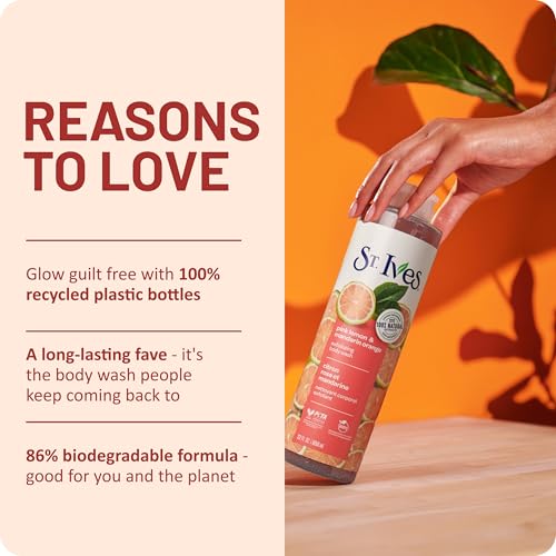 ST. Ives - اس تي ايفز شاور جل مقشر للبشرة راديانت، بالبرتقال والليمون والماندرين، صنع بالمنظفات النباتية والمستخلصات الطبيعية 100% | 16 اونصة 650 مل