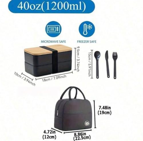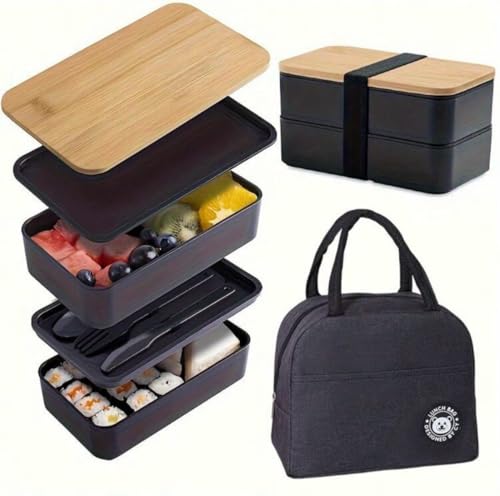 Generic - صندوق غداء بينتو من عبوات حفظ الطعام، مصنوع من البلاستيك، مكون من 3 طبقات، بحجم 1200 مل مع حقيبة معزولة
