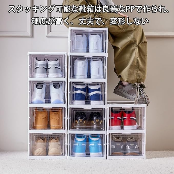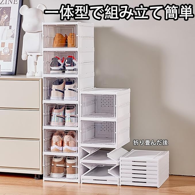 Generic - صناديق تخزين أحذية شفافة قابلة للتكديس، نظام تنظيم مكون من 6 طبقات مع باب أمامي شفاف، حل تخزين متعدد الأغراض للمداخل