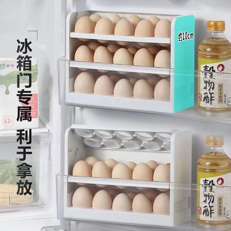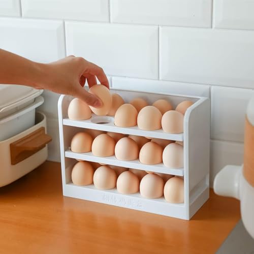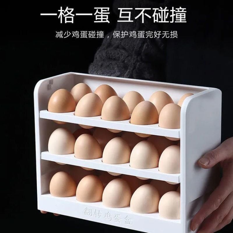 - يحمل ما يصل إلى 30 بيضة - سعة كبيرة: يمكن لمنظم البيض المكون من 3 طبقات تخزين ما يصل إلى 30 بيضة (10 بيضات لكل درج)، مما يبقيها آمنة ومحمية وفي متناول اليد دائمًا. مثالي للعائلات التي تستهلك البيض يوميًا.