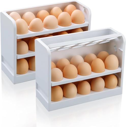 Generic - منظم بيض قابل للتكديس للثلاجة، صندوق تخزين بيض بلاستيك متين من 3 طبقات بتصميم درج، يحمل 30 بيضة (لون أبيض (عبوة من 2 قطعة)
