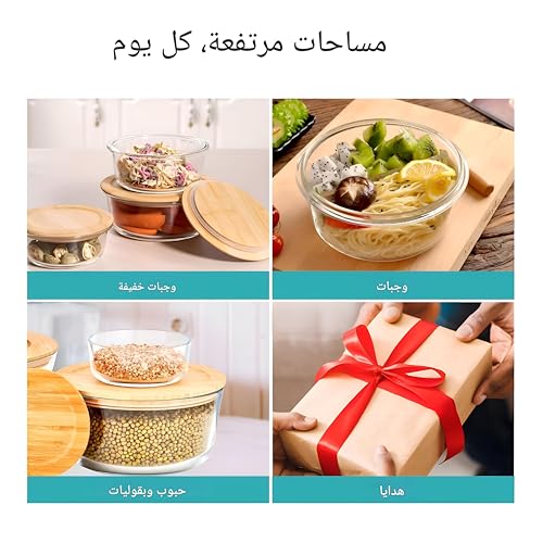 Generic - تخزين طعام زجاجي قابل للتكديس - غطاء من الخيزران، مادة البورسليكات، 400 مل الى 950 مل، مثالي للاستخدام في الثلاجة والفريزر (الخيار 1)