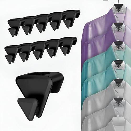 Generic - خطافات قابلة للتكديس - خطافات ملابس موفرة للمساحة وقابلة للتكديس تشكل شبكة شماعات صغيرة؛ لمسة نهائية سوداء، مشابك متينة، وسهلة إعادة ترتيب لتناسب أي خزانة، كما هو موضح في العروض التلفزيونية. (10)