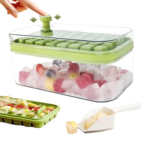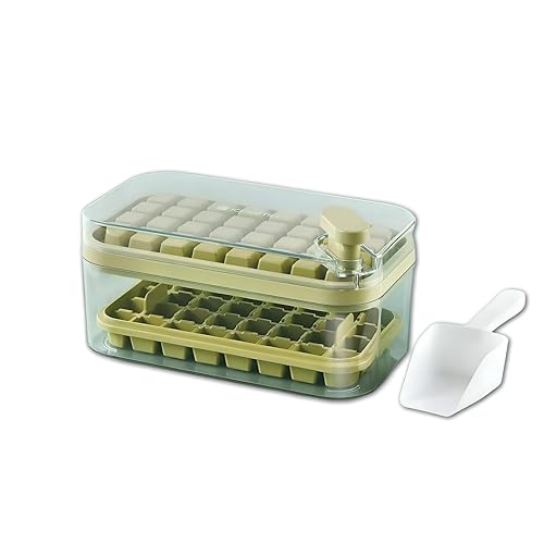 Generic - صينية صنع ثلج للفريزر، قابلة للتكديس وإعادة الاستخدام مع غطاء، للمشروبات الباردة، سهلة الاستخدام والإخراج، تتميز بحاوية تصريف، سعة كبيرة (لون أخضر)