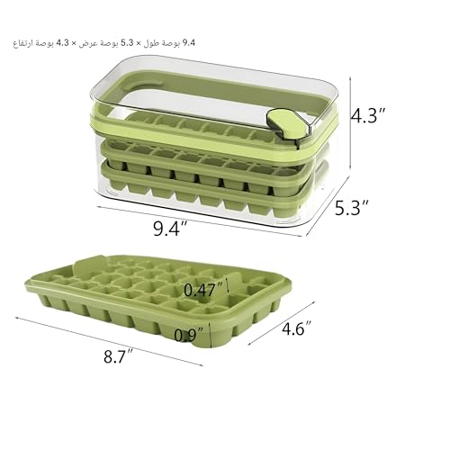 - 📦 ضاعف مساحة الفريزر لديك بفضل التصميم القابل للتكديس الذي يحافظ على تنظيم كل شيء وكفاءته. تتضمن المجموعة صينيتين قادرتين على تجميد ما مجموعه 64 مكعبًا، وهي مثالية للحفلات أو الكوكتيلات أو الاستخدام اليومي. يحافظ وعاء تخزين واسع على سهولة الوصول إلى جميع المكعبات ويمنع الانسكابات، بينما تسمح مغرفة الثلج المرفقة باستخراج سريع وخالٍ من الفوضى.
