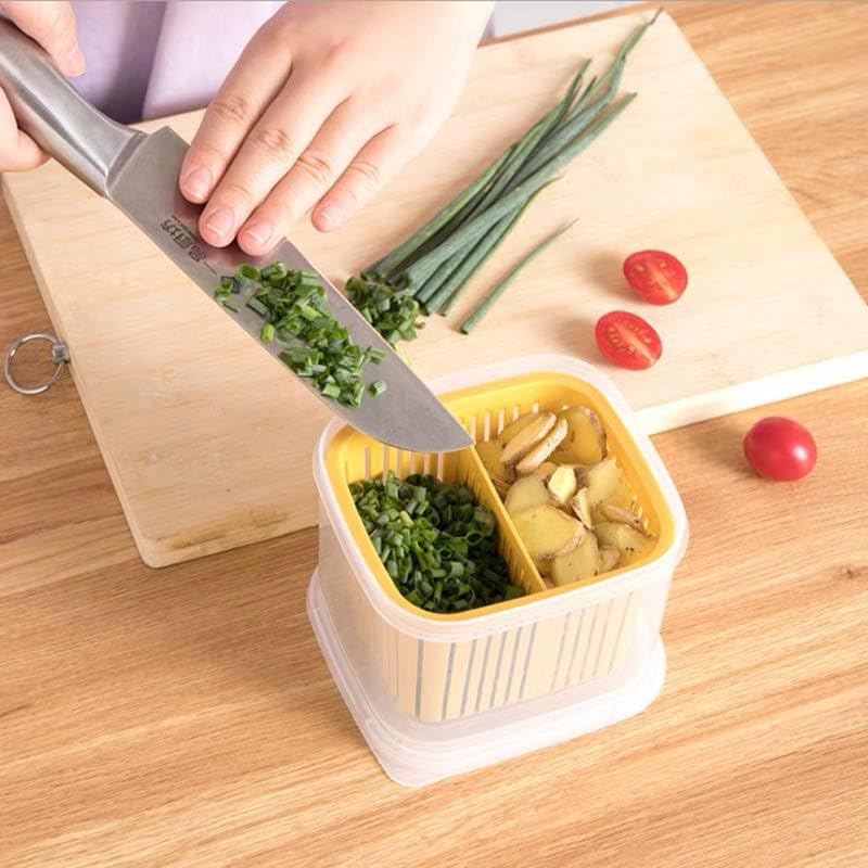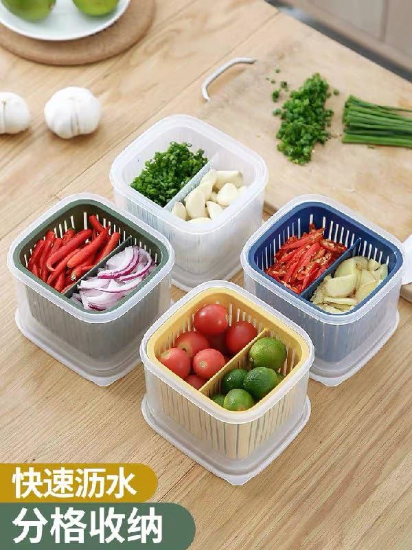 Generic - حاويات ثلاجة قابلة للتكديس مع صينية تصريف ومقسمة - قطعتان من صناديق تخزين الطعام البلاستيكية لحفظ الطعام الطازج بشكل منظم