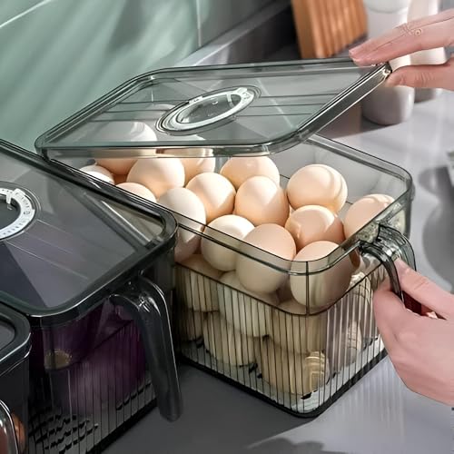 • مزودة بمقابض مدمجة قابلة للتكديس، تسمح هذه الصناديق الشفافة بسهولة التعرف على المحتويات عبر الثلاجة أو الفريزر أو الأرفف، بينما يبسط المقبض الأمامي عملية الإزالة والتنظيم دون متاعب أو فوضى.
