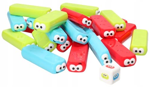- مجموعة كاملة: تتضمن 24 مكعب خشبي ملون تتميز بتصميمات عيون رائعة بألوان حمراء وأزرق وأخضر وأصفر نابضة بالحياة، بالإضافة إلى نرد لتحديد الكتلة التي يجب إزالتها أثناء اللعب