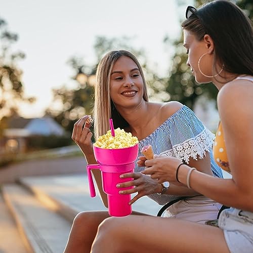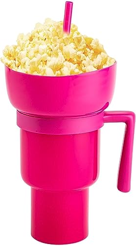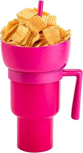 Sushi Kong - كوب مزود ببولة للوجبات الخفيفة، كوب 2 في 1 للوجبات الخفيفة والمشروبات، كوب مزود ببولة فريدة، بولة علوية للفشار والحلوى ورقائق البطاطس والوجبات الخفيفة، كوب وجبات خفيفة للأفلام والملعب (وردي)