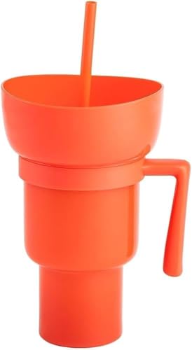 Spaceshoop - كوب استاد محمول مانع للتسرب مع بولة مدمجة مناسب للمشروبات والوجبات الخفيفة في آنٍ واحد والعشاء العائلي والمشاهدة الأفلام والسفر (برتقالي)