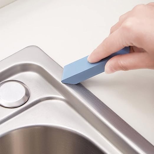 - استيكة مزيلة للبقع: تزيل تراكم الأوساخ العنيدة والمتراكمة. تنظف الأوساخ وبقع المياه العسرة على الأسطح المصنوعة من الفولاذ المقاوم للصدأ بعمق، لتترك لك سطحًا نظيفًا. يمكن استخدامها أيضًا مع بعض المنظفات لتحسين عملية التنظيف.
