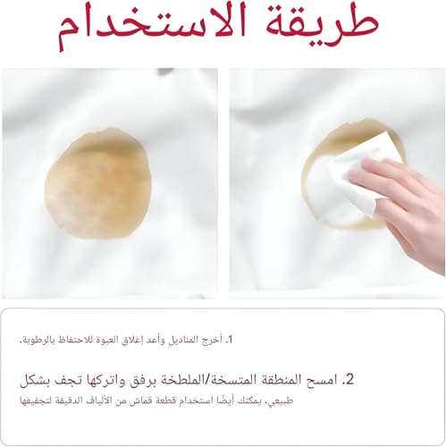 - ✅【تنظيف فوري وسهل】 المناديل المبللة لتنظيف الملابس بتوفرلك طريقة سريعة وفعالة للتعامل مع أي بقعة على القماش في ثوانٍ، من غير ما تحتاج تغسل أو تفرك. كل منديل يحتوي على تركيبة فعالة تنظف بعمق وتحافظ على الملمس الطبيعي للأقمشة مهما كانت حساسة. 👕