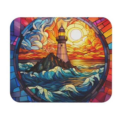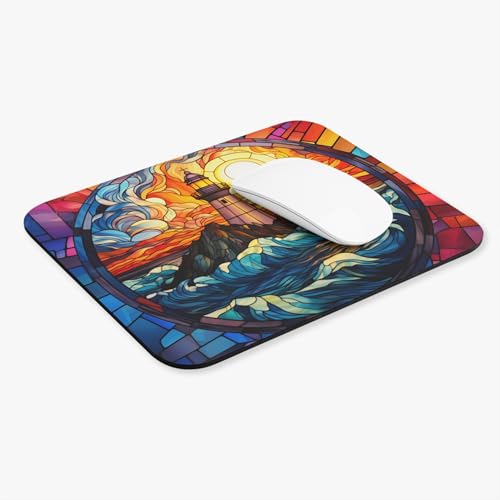 Generic - قاعدة ماوس متينة بتصميم قارب شراعي عند غروب الشمس من الزجاج الملون - قاعدة ماوس ناعمة وغير قابلة للانزلاق للمكتب والألعاب - 288