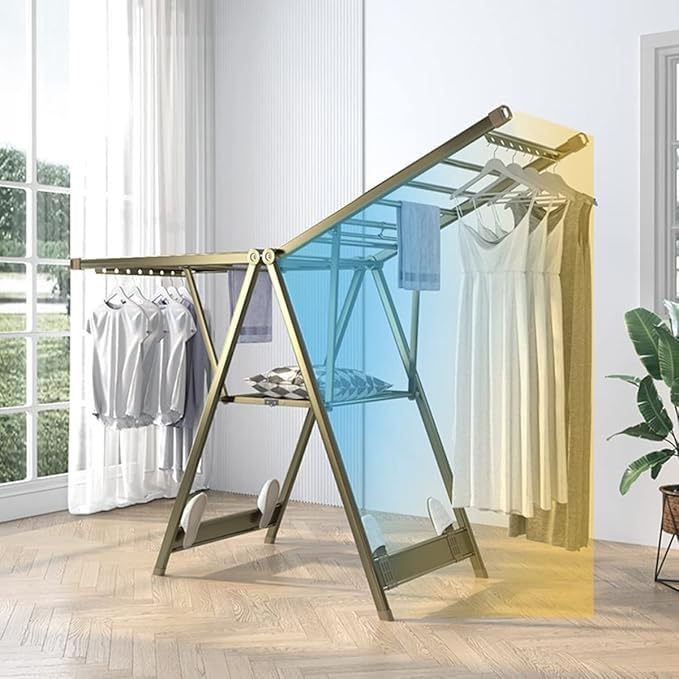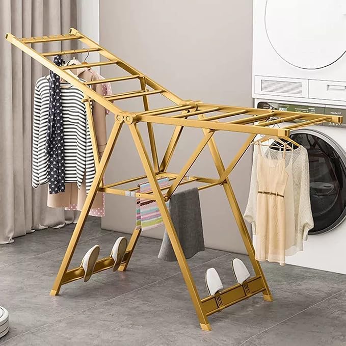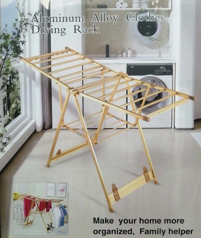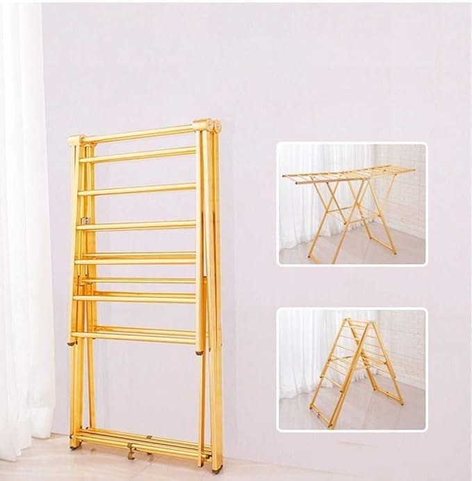 Generic - منشر ملابس ألومنيوم مقاوم للصدأ ، بماسورة مبططة – عملي وخفيف وسهل الطي (ذهبى)