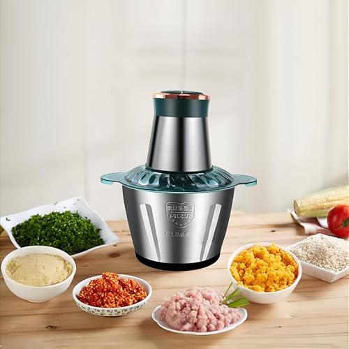 Generic - مفرمة أنيقة بوعاء من الفولاذ المقاوم للصدأ SUS 304 سعة 2 لتر مع 4 شفرات تقطيع ومحرك 200 واطت وسرعتين لتقطيع وفرم دقيق آمنة على الطعام وسهلة التجميع والتنظيف