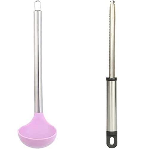Generic - مغرفة توزيع سيليكون بيد من الستانلس ستيل - ألوان متنوعة + مقوار ستانلس ستيل - ألوان متنوعة