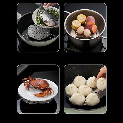 Generic - جهاز الطهي بالبخار من الفولاذ المقاوم للصدأ - رف طهي صحي مع سطح مقاوم للالتصاق لا يحتاج إلى زيت يناسب أي وعاء تصميم متين وسهل التنظيف لطهي الطعام بالبخار في وقت واحد