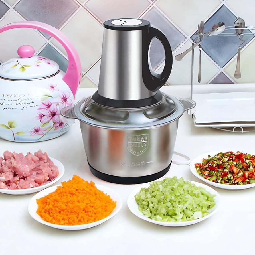 Generic - مفرمة لحوم من الفولاذ المقاوم للصدأ سعة 2 لتر بمحرك نحاسي 250 وات بـ3 سرعات