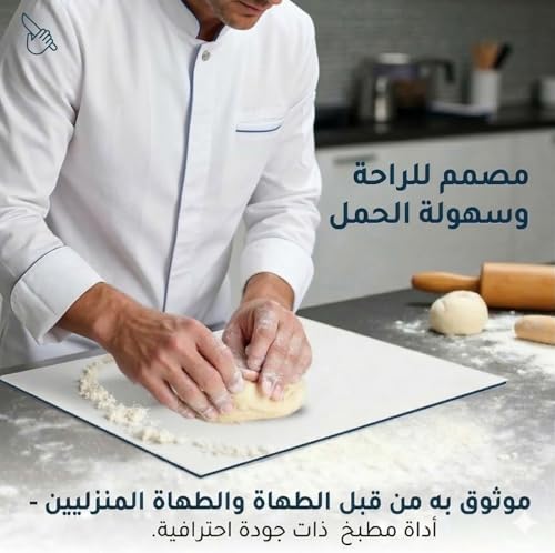 - لوح متعدد الاستخدامات (30 × 40 سم): المقاس الكبير وسمكه الذكي (1.5 مم)، ليس مجرد لوح تقطيع، بل هو "محطة عمل" متكاملة. ممتاز لتقطيع اللحوم، الخضروات، الفواكه، ومثالي جدًا لفرد العجين والمخبوزات بفضل سطحه البارد الذي يمنع التصاق العجين، كما يمكن استخدامه كلوح تقديم أنيق للأجبان.