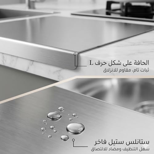 - 【ثبات مزدوج بتصميم على شكل حرف L المبتكر: صُمم خصيصًا ليمنحك استقراراً تاماً؛ الحافة الأمامية على شكل حرف L تثبت بإحكام على طرف الرخامة، ومع حصيرة السيليكون المرفقة (حصيرة مضادة للانزلاق)، نضمن لك عدم تحريك اللوح نهائياً أثناء تقطيع اللحوم القوية أو الخضروات، لتقطيع أسرع وأكثر أماناً.