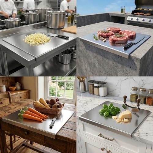 Generic - لوح تقطيع من الستانلس ستيل 304 كبير 30×40 سم - لوح تقطيع مزدوج الجوانب للخضروات والفواكه مع حصيرة سيليكون غير قابلة للانزلاق، حافة طاولة على شكل حرف L وحواف دائرية امنة للحوم والخبز والعجين