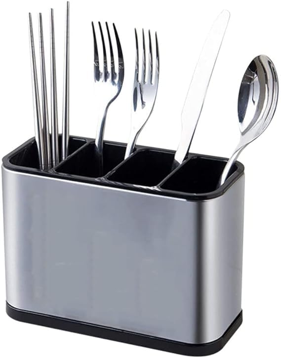 Generic - صفاية معالق 4 خانات من الاستانلس ستيل لتنظيم مطبخك بأناقة وجودة عالية، مع قاعدة بلاستيكية مبتكرة لتصريف المياه بسهولة، ضمانًا للمتانة والنظافة|من عام