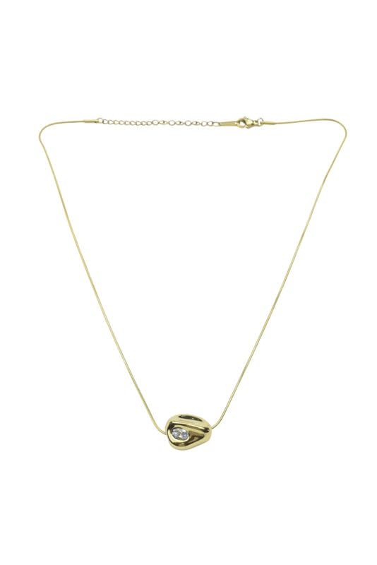Generic - عقد بقلادة تجريدية من الستانلس ستيل مع حجر شفاف للنساء - ذهبي