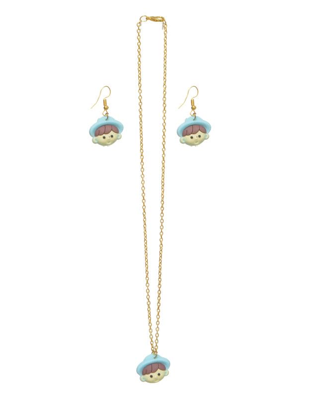 Generic - طقم اكسسوارات من الفولاذ المقاوم للصدأ مكون من قطعتين، سلسلة وحلق للبنات الصغيرات، لون ذهبي، DR-A-80