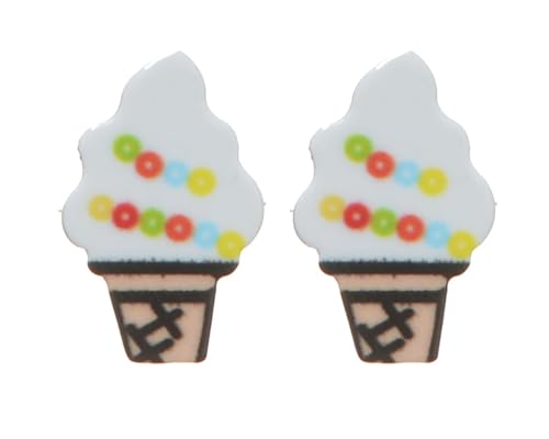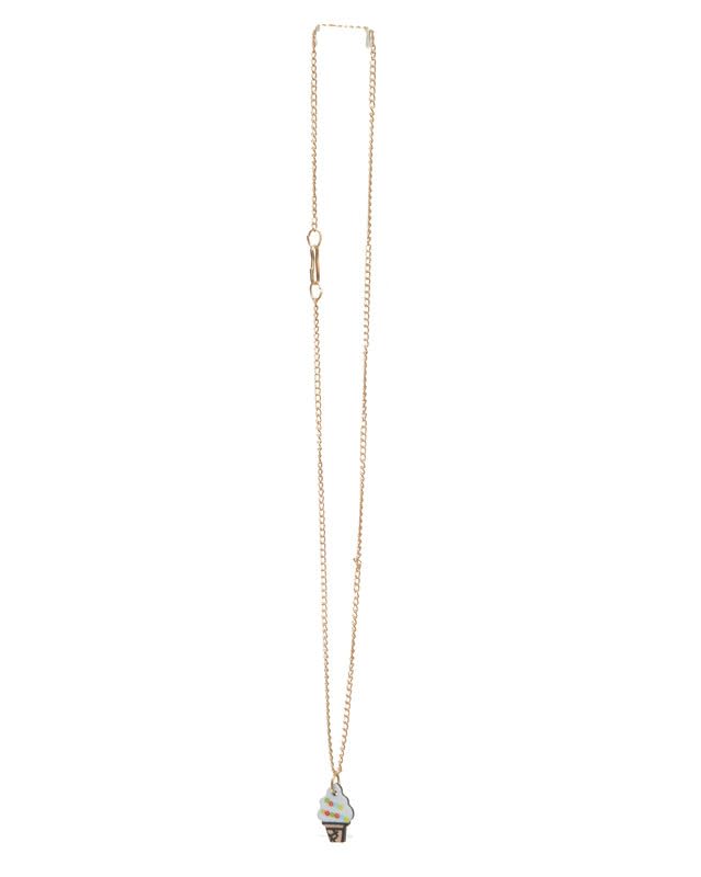 Generic - طقم اكسسوارات من الستانلس ستيل مكون قطعتين سلسلة وحلق بتصميم ايس كريم للبنات لون ذهبي DR-A-29