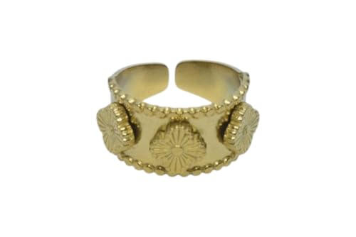 Generic - خاتم من الفولاذ المقاوم للصدأ قابل للتعديل مع زخارف زهور للنساء، لون ذهبي